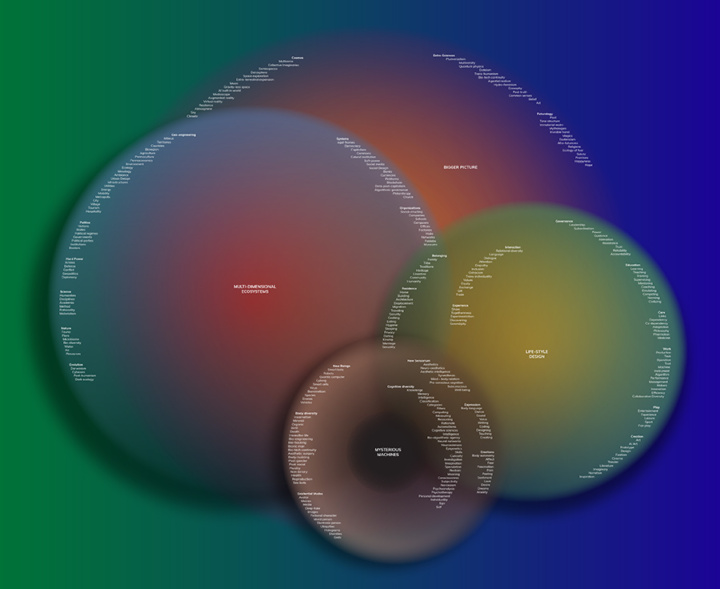 - How can we understand the major transitions underway and imagine meaningful new future worlds, when all our anthropological and epistemological foundations are being called into question? How to design new aspirational future worlds and ‘alien cosmologies’, to renew our visions of the world and of the future?
