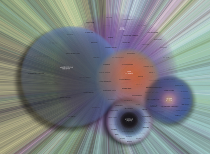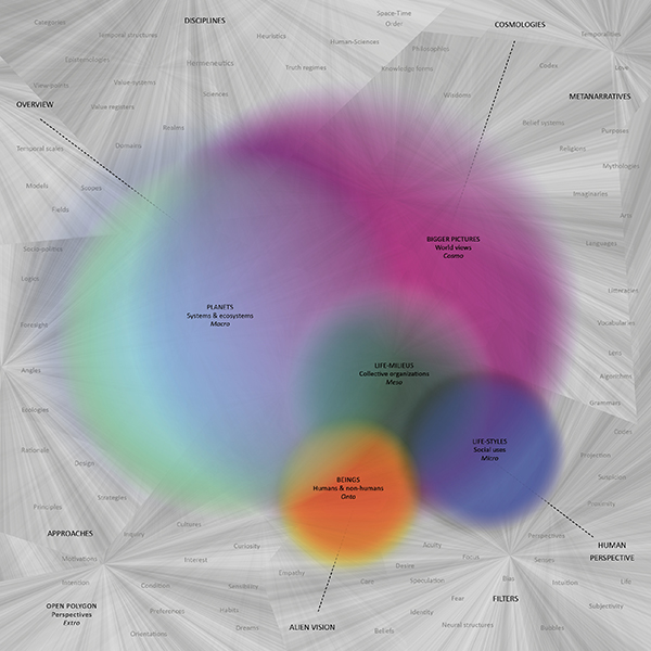 This article offers a grand tour through the movements of the world and the critical future challenges they raise in the prospective horizon of alien cosmologies. The diagram serves as a multi-scalar topology and canvas to order and give meaning to these themes and topics.